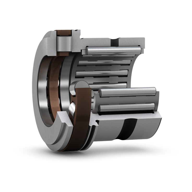Combined needle roller bearings consist of a radial needle roller bearing combined with a thrust bearing. The combined bearings can accommodate both radial and axial loads. They are particularly suitable for applications where other types of locating bearing arrangements occupy too much space. They are also suitable in situations where the axial loads are too heavy, the speeds are too high, or the lubricant is inadequate for arrangements with simple thrust washers.