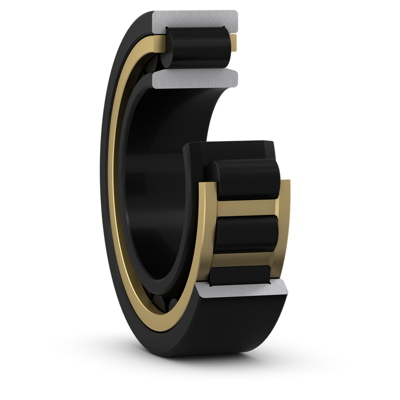 Single row cylindrical roller bearings are designed to accommodate high radial loads in combination with high speeds. Having two integral flanges on the outer ring and no flanges on the inner ring, NU design bearings can accommodate axial displacement in both directions. An important feature is the separable design, which facilitates mounting and enables the bearing components to be interchanged.
